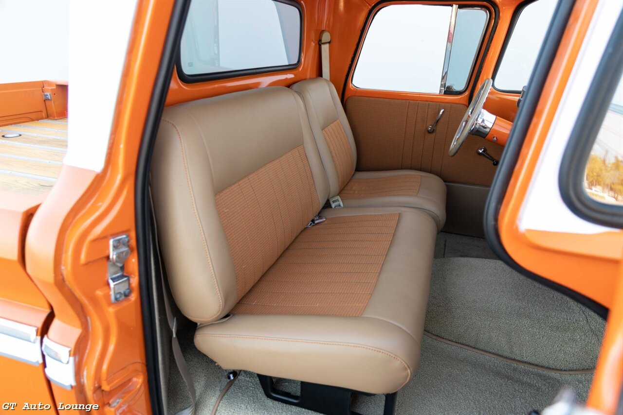 1962 GMC 1000 1/2 Ton Pickup in Matte Orange & White over Tan Interior. Equipped with a Fuel Injected 5.7L V8 mated to an Automatic Transmission. Features include: Power Disc Brakes, Raised Bed & Notched Frame, Custom Welded Front & Rear Clip, American Racing Wheels, Dolphin Gauges, Split Bench Seat, Nakashima Head Unit w/ Pioneer Speakers & Kicker Sub & Amp plus more! This GMC is ready to be driven and enjoyed! For more information please call 916-387-9997.