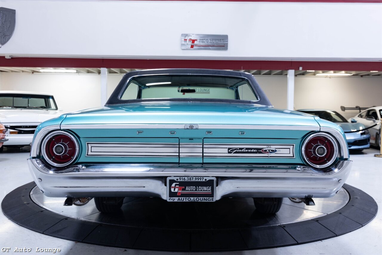 1964 Ford Galaxie 500XL Fastback Hardtop in Dynasty Green over Black Interior. Equipped with a 390ci V8 mated to an Cruise-O-Matic Automatic Transmission. This stunning Galaxie was ordered through the San Jose, CA DSO and built at the Los Angeles, CA assembly plant on December 16th. Features include: AM Radio w/ Reverb, Power Disc Brakes, Power Steering, Aluminum High Rise Intake, Alternator and more! This Galaxie has been under long term ownership in California and is ready to be driven and enjoyed! For more information please call 916-387-9997.