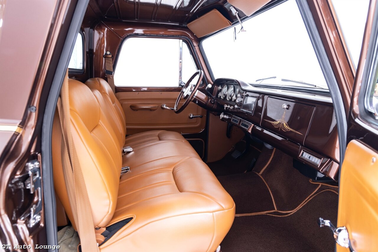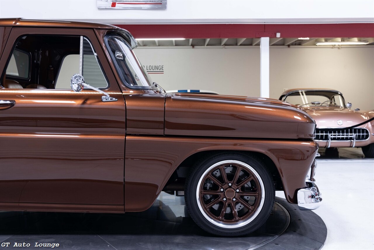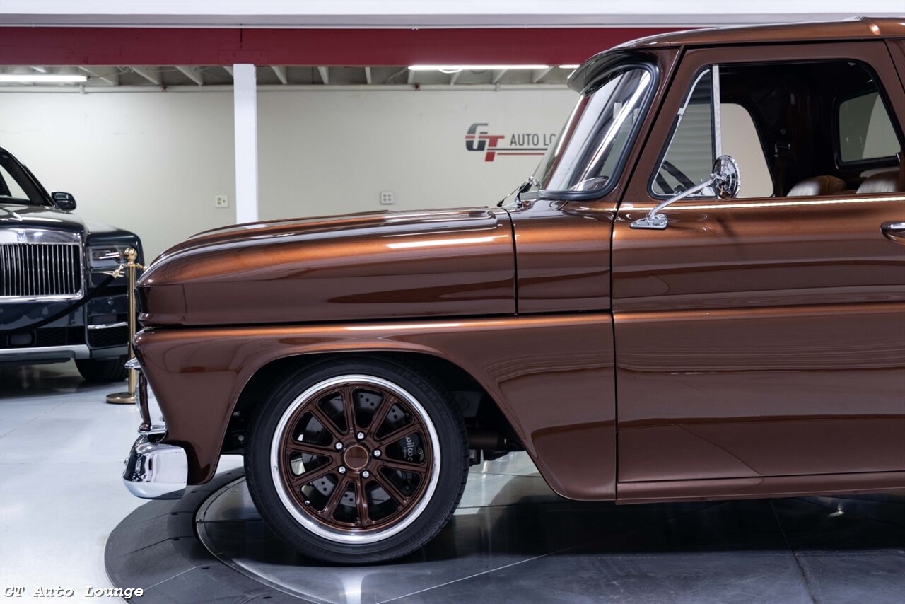 1965 GMC 1000 Fenderside Pickup Restomod in Metallic Bronze over Butterscotch Interior. Equipped with a Supercharged 6.7L LS V8 mated to a 4L80E Automatic Transmission. This GMC is the product of a no expense spared restoration. Features include: Custom Chassis by Scotts Hotrods n Customs, Rex Hutchison Built LS Motor, Vortec Centrifugal Supercharger, COMP Cams Camshaft, Aluminum Cylinder Heads, Edelbrock Intake Manifold, BBK Throttle Body, Hedman Headers, Independent Front Suspension, 4 Link 9" Posi Rear End w/ 3.70 Gears, Aldan Adjustable Coilovers, Wilwood 4 Wheel Hydoboost Disc Brakes, Rack n Pinion Power Steering, TCI Shift Kit, Rev Max Torque Converter, Vintage Air AC, Pioneer Touchscreen Stereo w/ Backup Camera, Classic Instruments Gauges, Ididit Tilts Column and more! This stunning GMC Pickup is ready to be driven and enjoyed! For more information please call 916-387-9997.