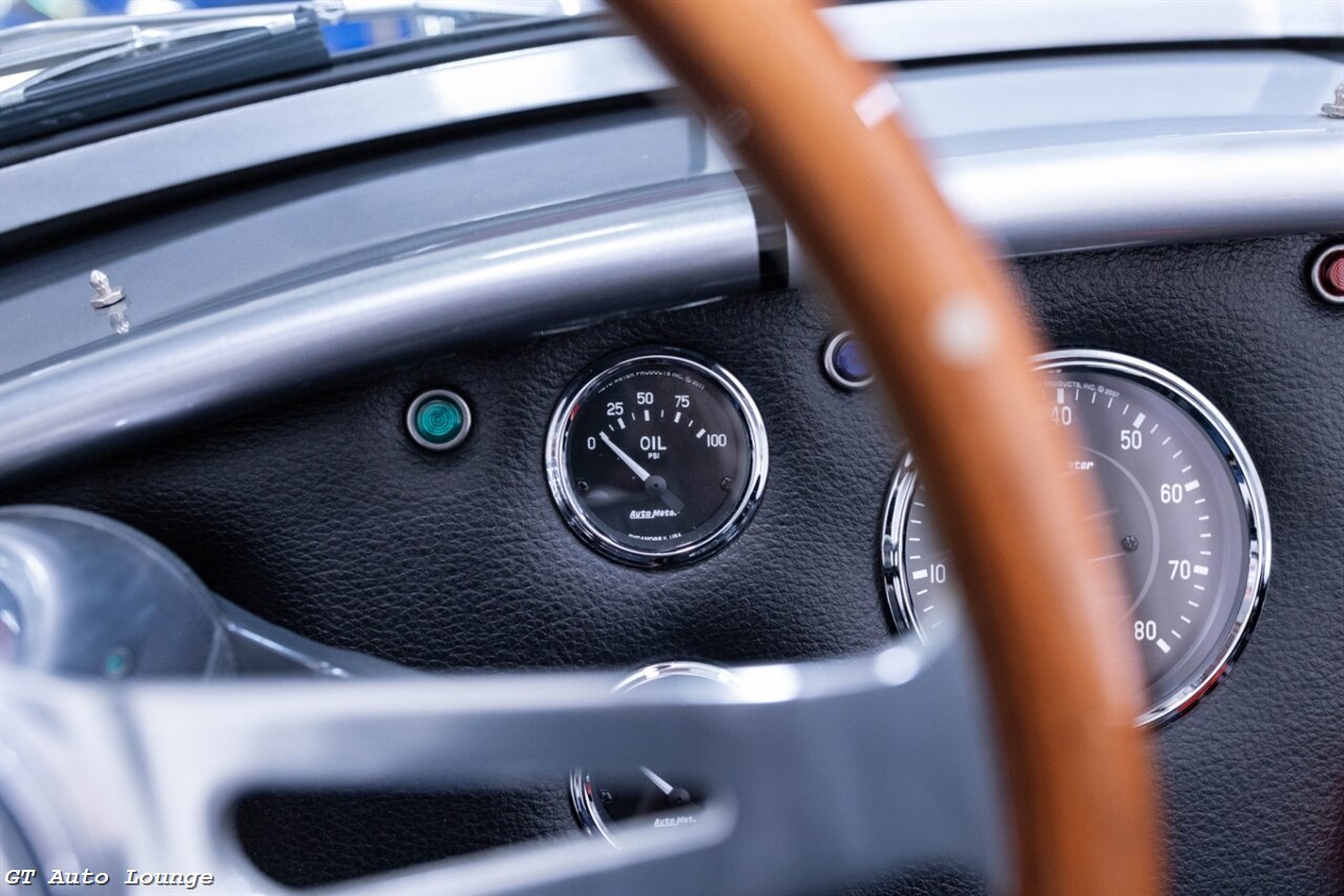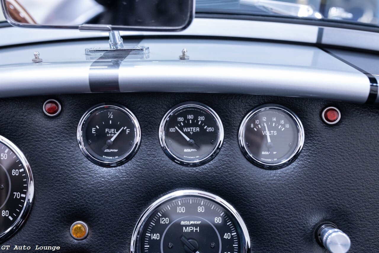 1965 Bakc Draft Racing Shelby Cobra in Grey with Silver Stripes over Black Interior. Equipped with a 5.0L Coyote V8 mated to a Tremec 5 Speed Manual Transmission. Features include: Tremec TKO 600 Transmission, 4 Wheel Disc Brakes, Rack n Pinion Steering, 3.91 Posi Rear End, Quick Time Bell Housing, Centerforce Clutch, Chrome Ray Dyot Mirror, Quick Jacks, Autometer Gauges, Moto Lita Steering Wheel, Heated Seats, 18" Halibrand Style Wheels w/ Polished Lips and more! This stunning Cobra is ready to be driven and enjoyed! For more information please call 916-387-9997.