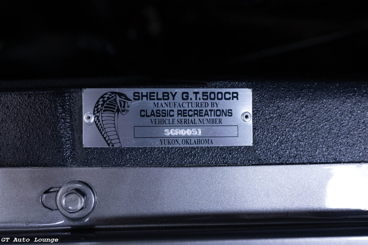 1967 Ford Mustang GT500 CR by Classic Recreations in Pepper Gray w/ Black Over the Top Stripes over Black Interior. Equipped with a 5.0L Coyote V8 mated to a Tremec T5Z 5 Speed Manual Transmission. This stunning Mustang is the product of a no expense spared build by Classic Recreations. Features include: Wilwood 4 Wheel Disc Brakes, 4 Wheel Adjustable Coilover Suspension, FAST Fuel Injection, Mustang II IFS & Currie 9" Posi Rear End w/ 3.50 Gears, Tubular Subframe Connectors, Power Rack n Pinion Steering, Flaming River Tilt Column, Air Conditioning, Carroll Shelby Signature Bucket Seats w/ G-Force 5 Point Harnesses, Carroll Shelby Signature Gauges, Woodgrain Steering Wheel, Deluxe Door Panels, Dash & Trim, Carroll Shelby Center Console, Premium Sound System w/ Subwoofer, Shelby 18" Wheels and more! This stunning Shelby GT500CR is ready to be driven and enjoyed! For more information please call 916-387-9997.